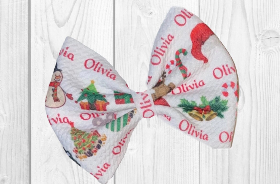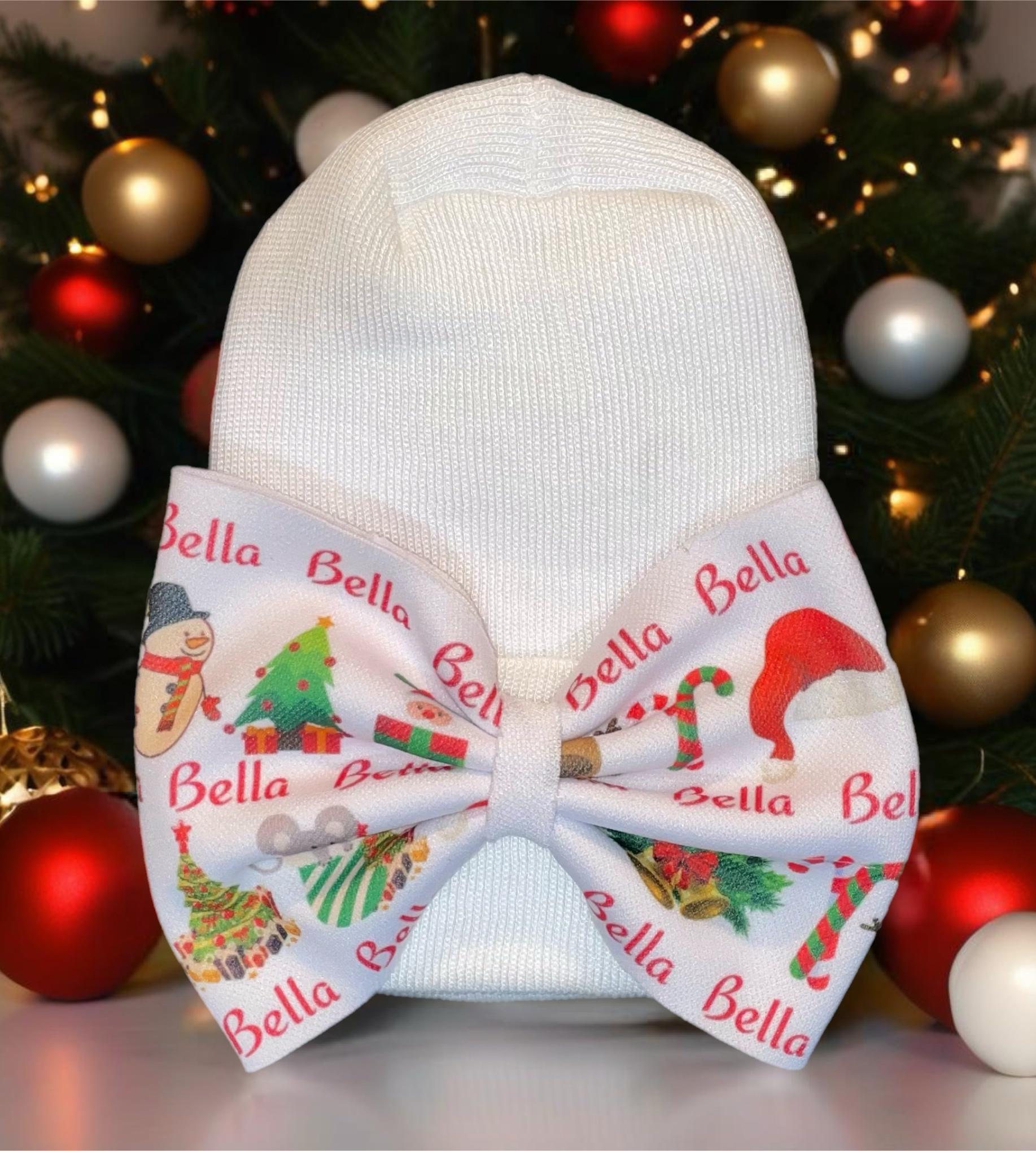 I am so excited to be able to offer these custom Christmas bows with name on it.  The headband will infants to adults.  The hat will fit newborn only.  You select it on hat, headband or alligator clip at checkout  ♥ A Posh Baby Loves exclusive!  Great gift. Cute for pictures.