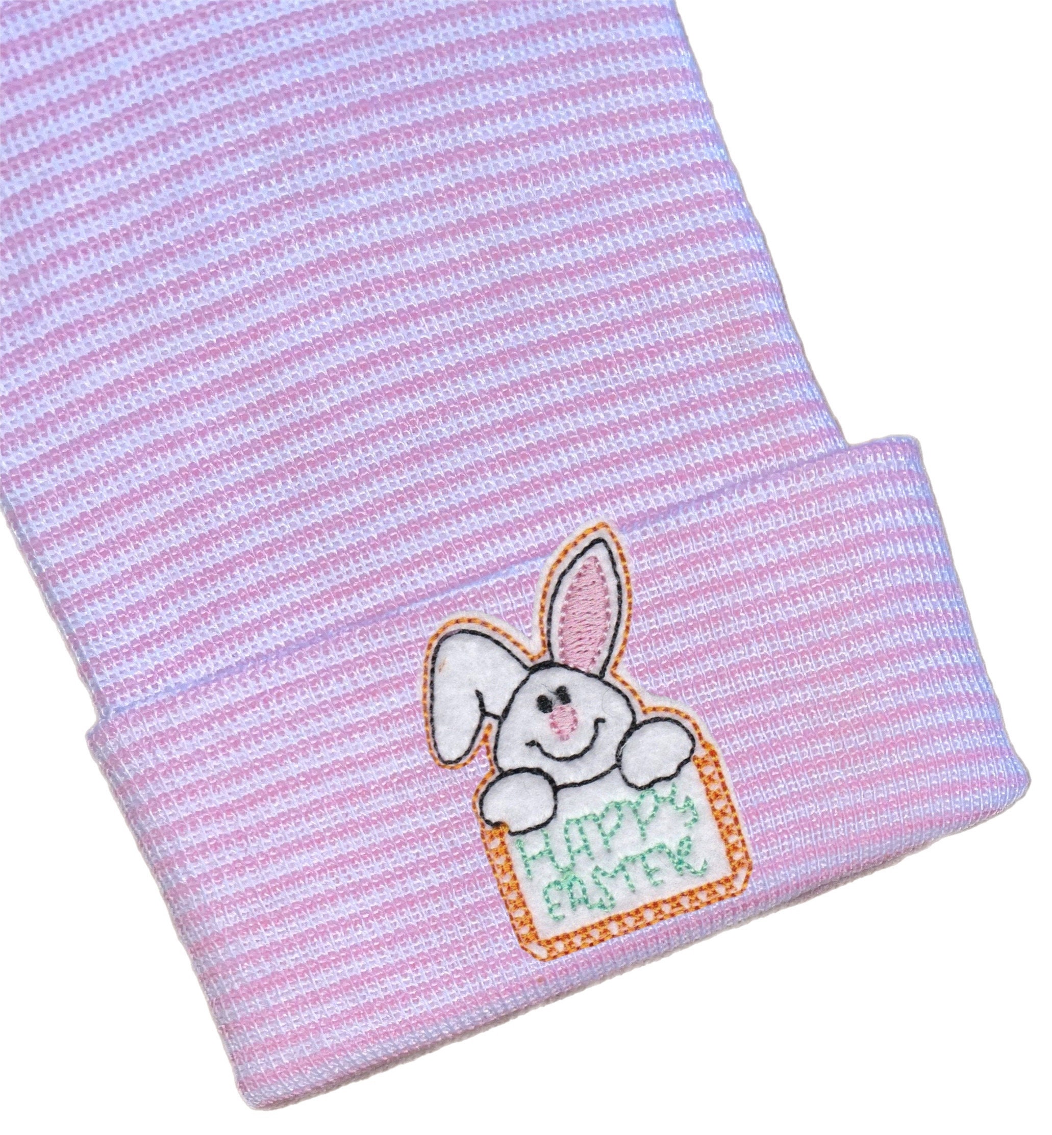 This listing is for an adorable newborn hospital hat with pink ear bunny. You choose hat color.