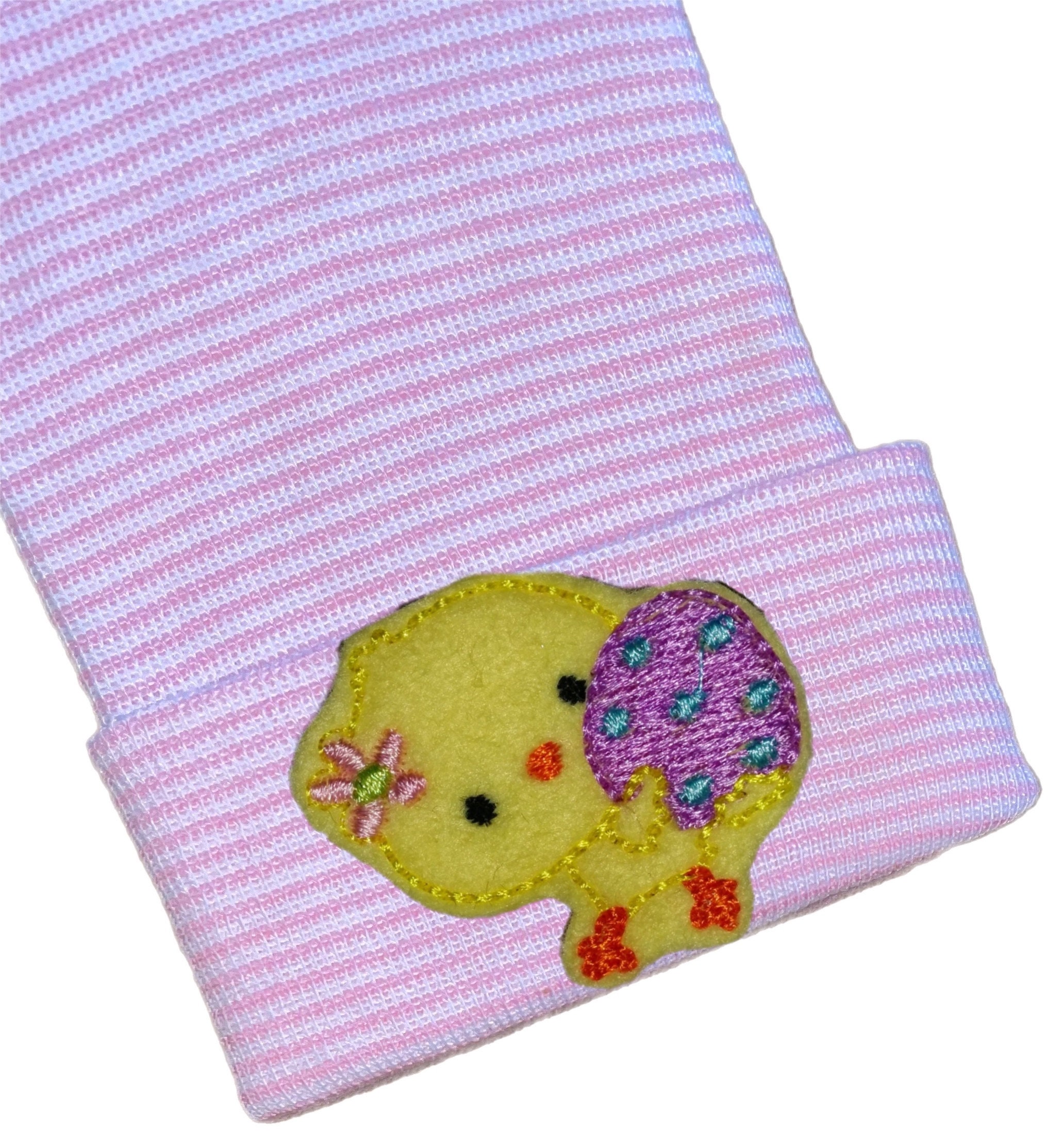This listing is for a newborn hospital hat with chick holding easter egg. You choose hat color.