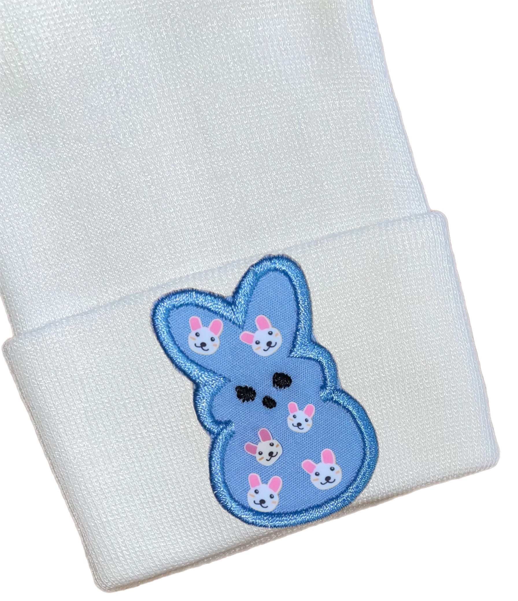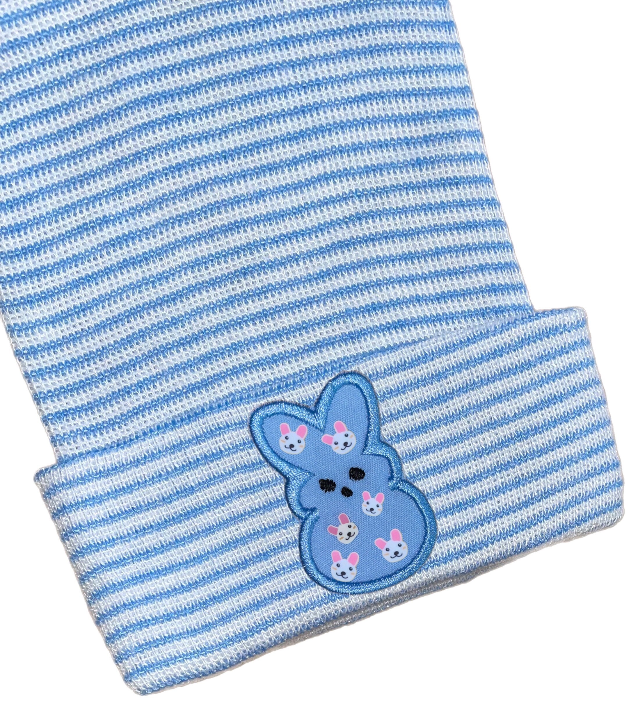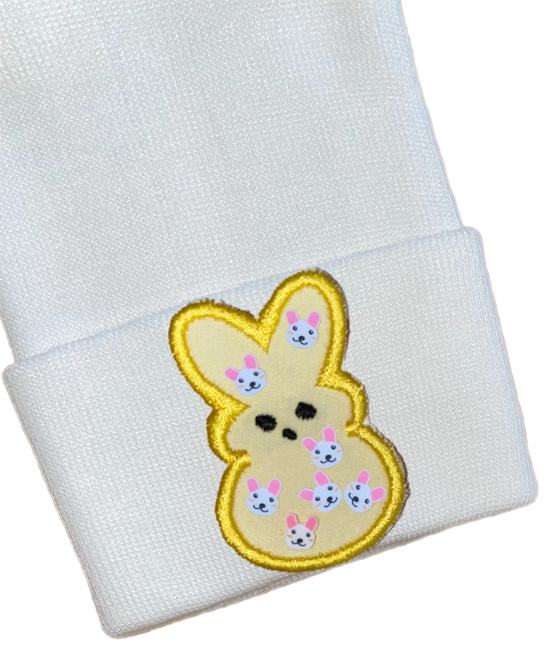 This listing is for an adorable newborn hospital hat with bunny on it in your choice of pink, blue, white or yellow. You choose hat color too.