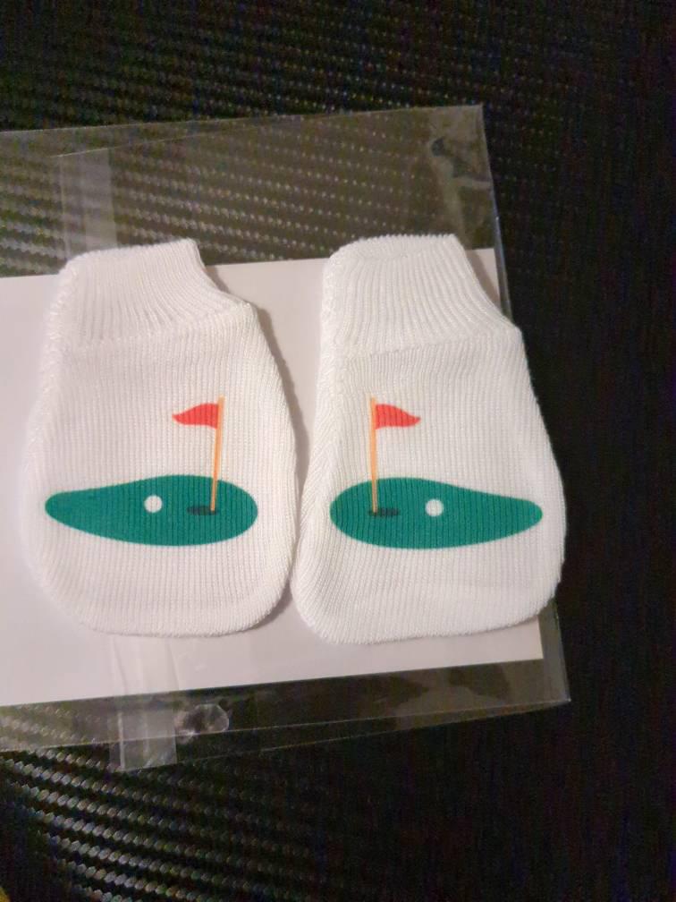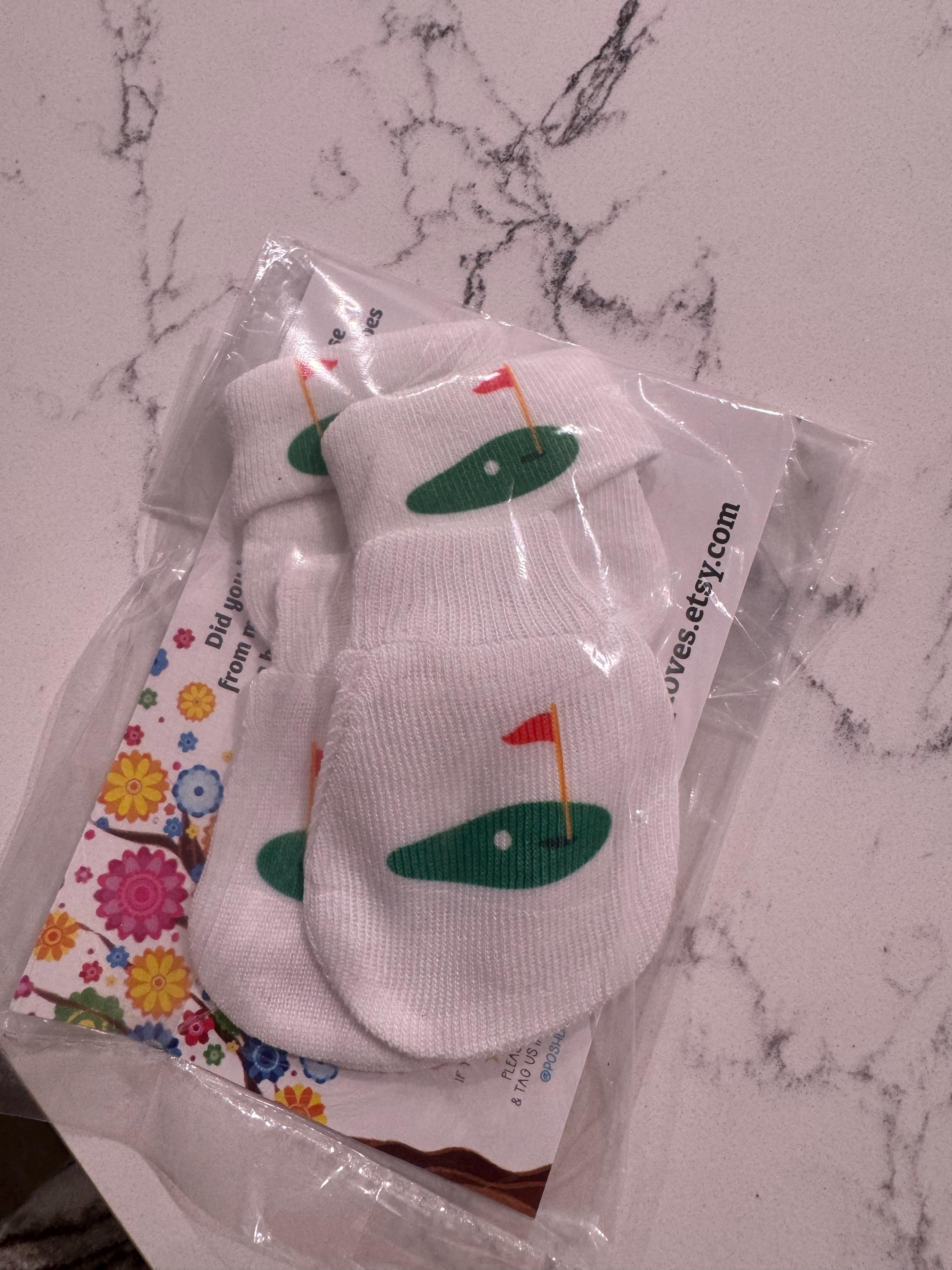 This listing is for an adorable pair of newborn no scratch mittens for newest golfer or baby of a golfer. Makes a great shower gift! These are also a cute way to announce you are pregnant!