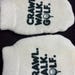 I was disappointed because the little mittens were discolored. It looked like they’d been scorched by an iron. Probably while doing the iron on. I couldn’t include them with the socks and onesie gift. Too bad. The onesie and socks were nice. But the mittens were clearly damaged in the process.