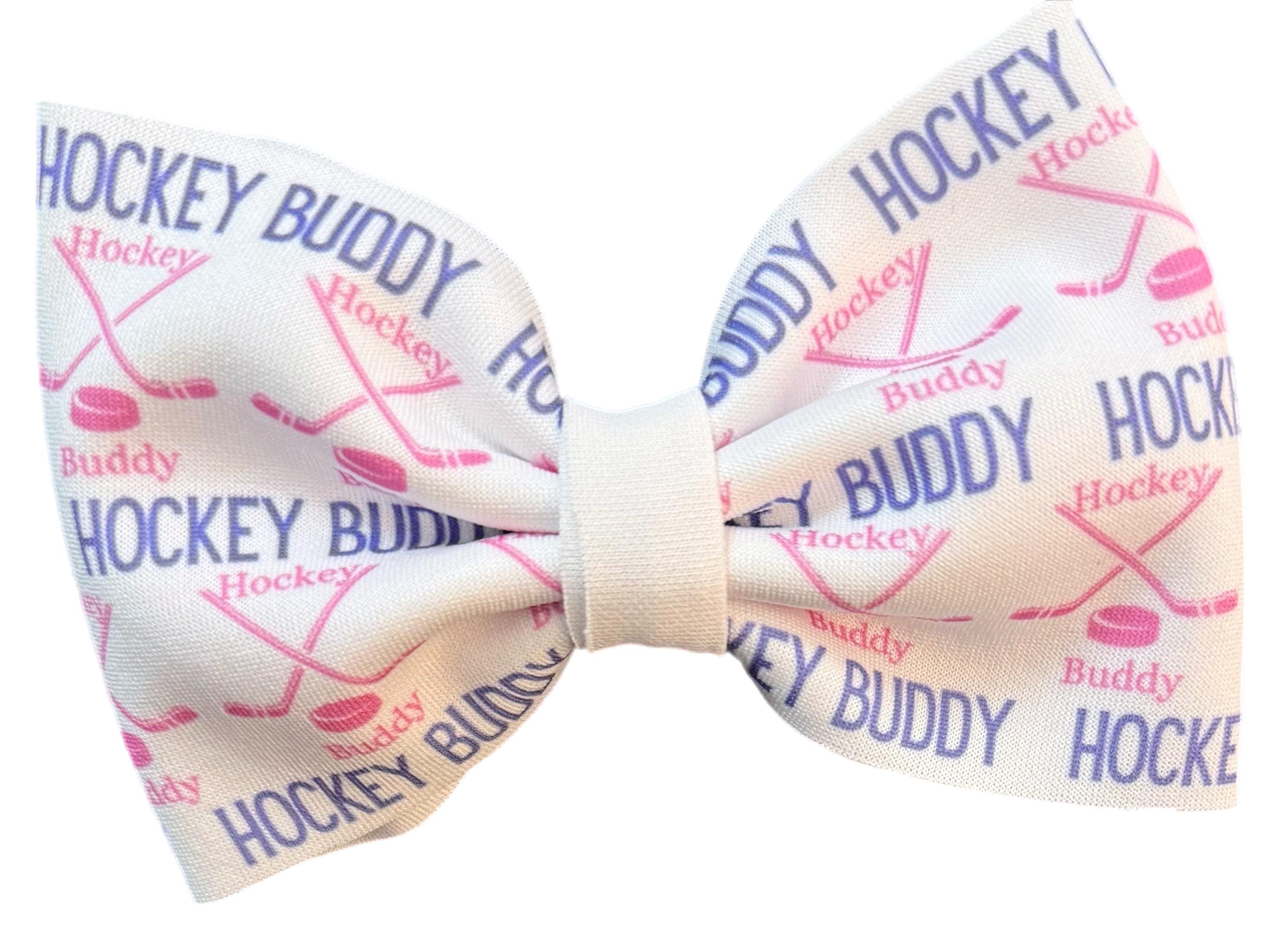 This listing is for a headband with hockey players and  hockey buddy on bow. You choose color.