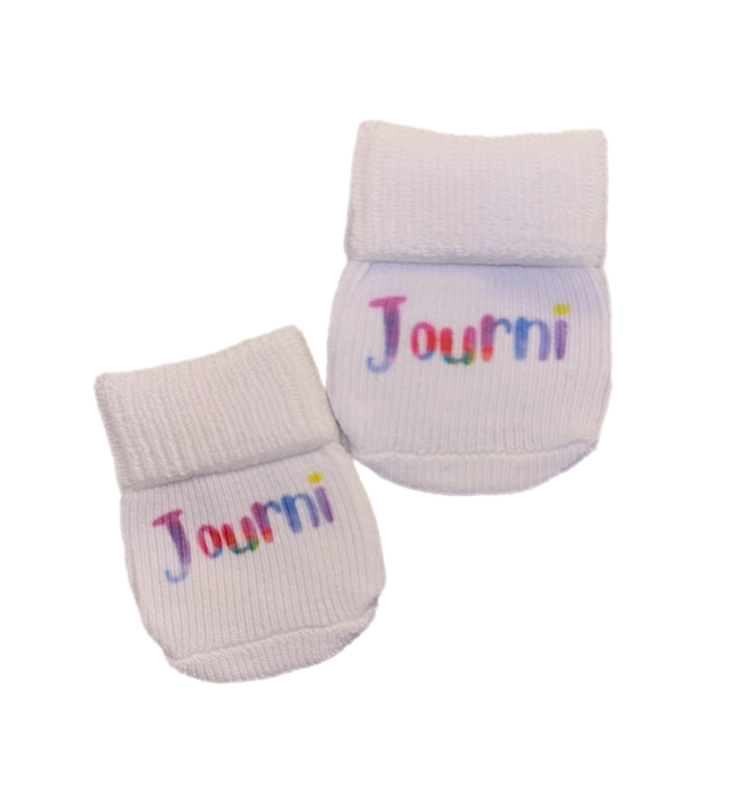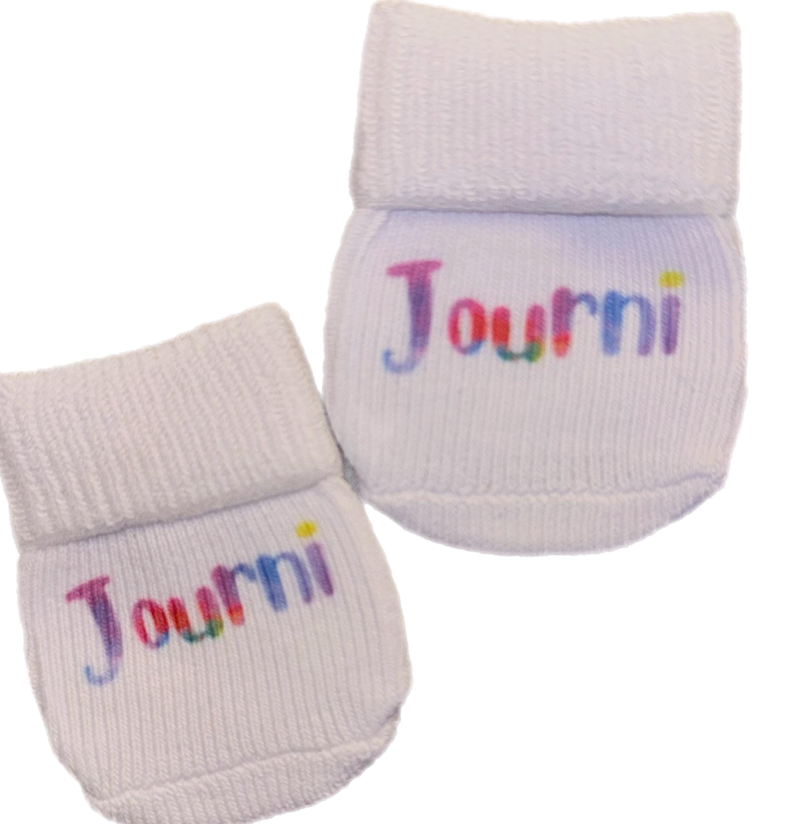 This listing is for a pair of preemie no scratch mittens with name on them or socks or both in name color choice! You choose at checkout.
