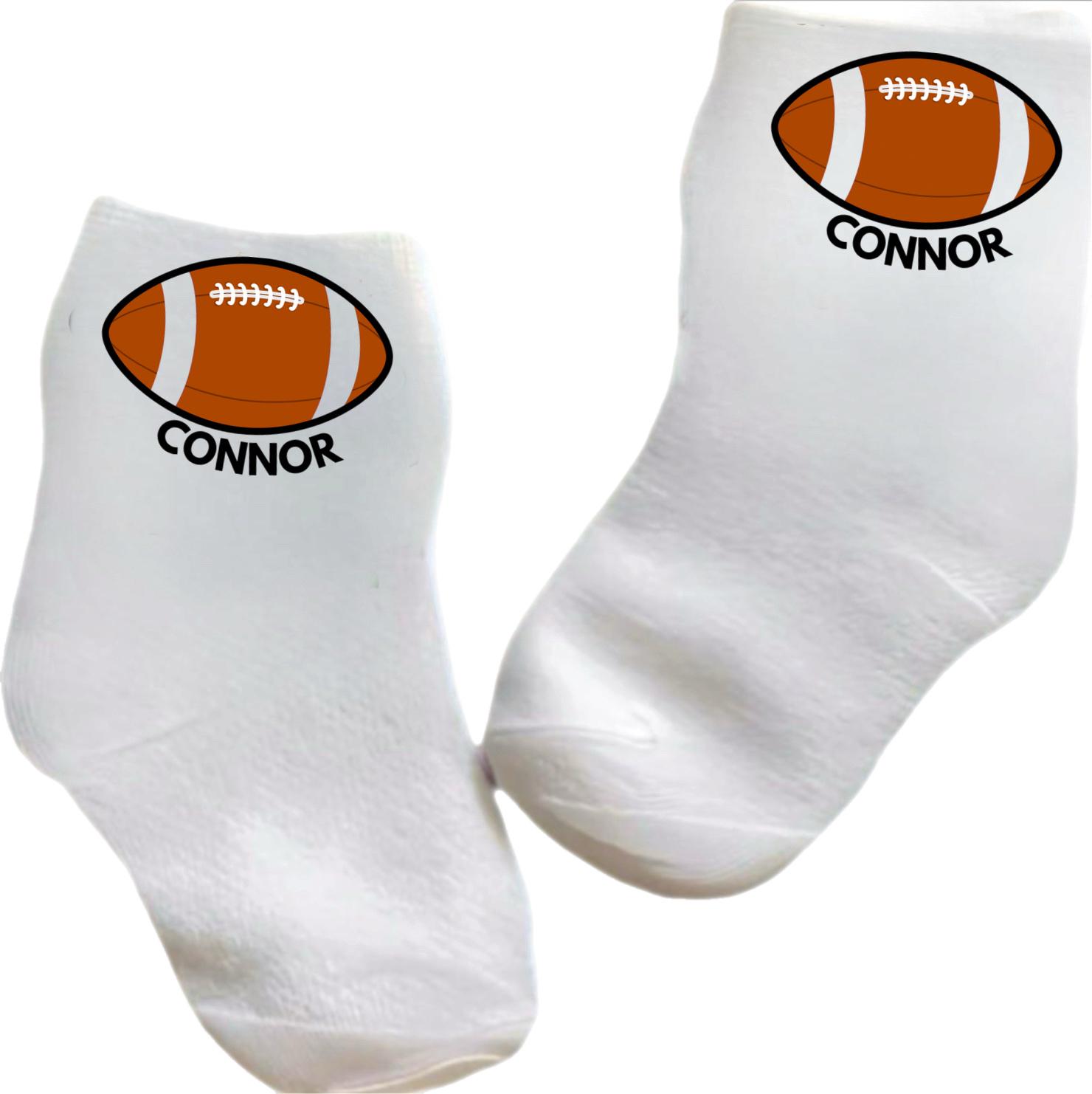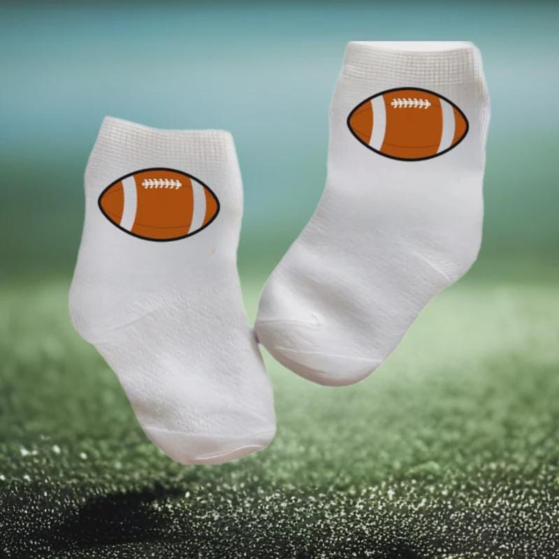 This listing is for a pair of socks with footballs on them. You choose size from 0-6 months to 10 years at checkout.