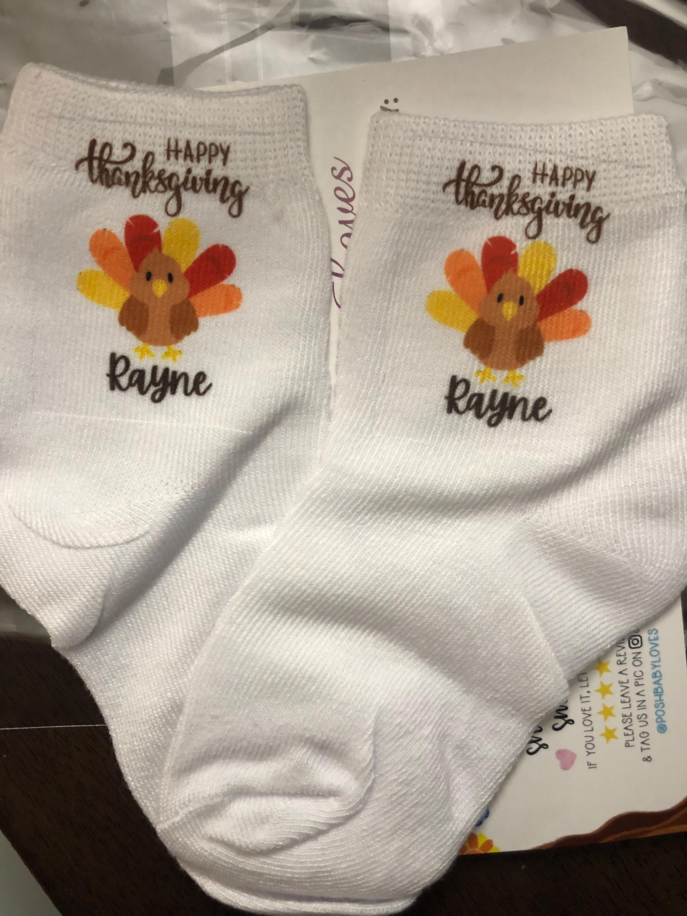 This listing is for an adorable pair of Thanksgiving socks with option to add name on them. You choose size and design. These are offered in sizes from 0-6 months to 10 years. This listing is for 1 pair of socks. Cute for boy or girl.