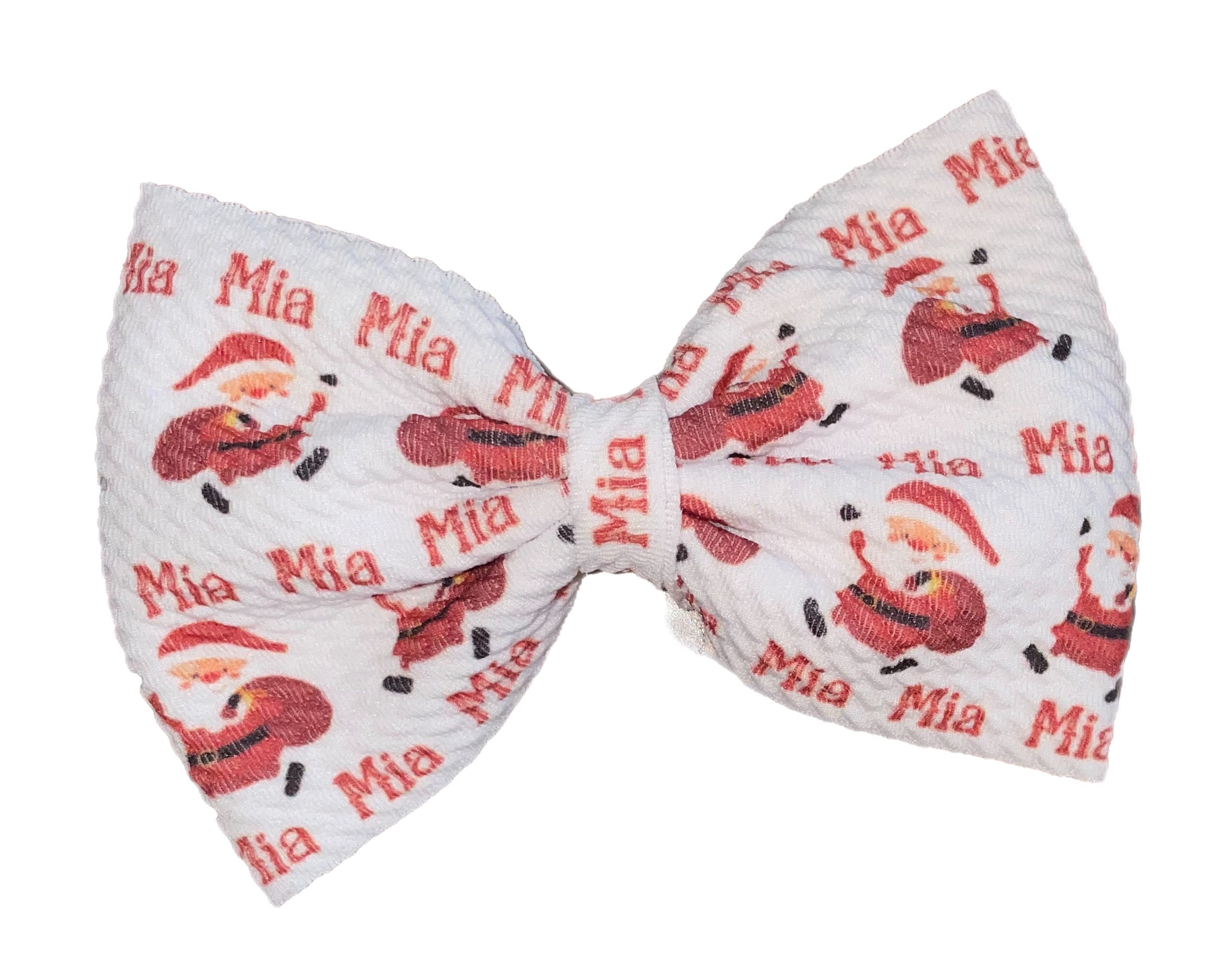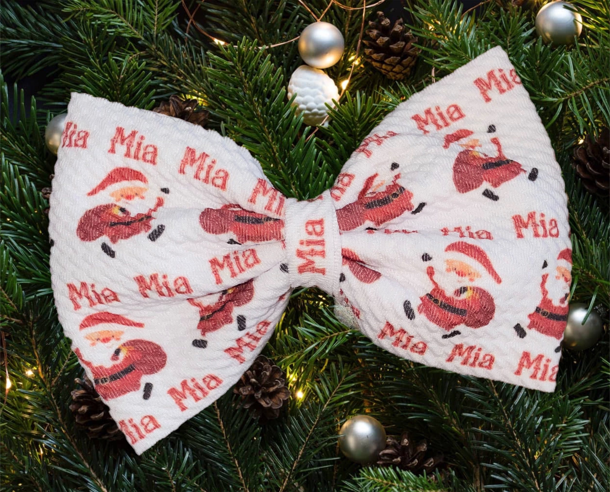 I am so excited to be able to offer these custom bows with Santa and name on it.  You select it on white newborn hat, nylon headband or alligator clip at checkout  ♥ A Posh Baby Loves exclusive!  Great gift. Cute for pictures.