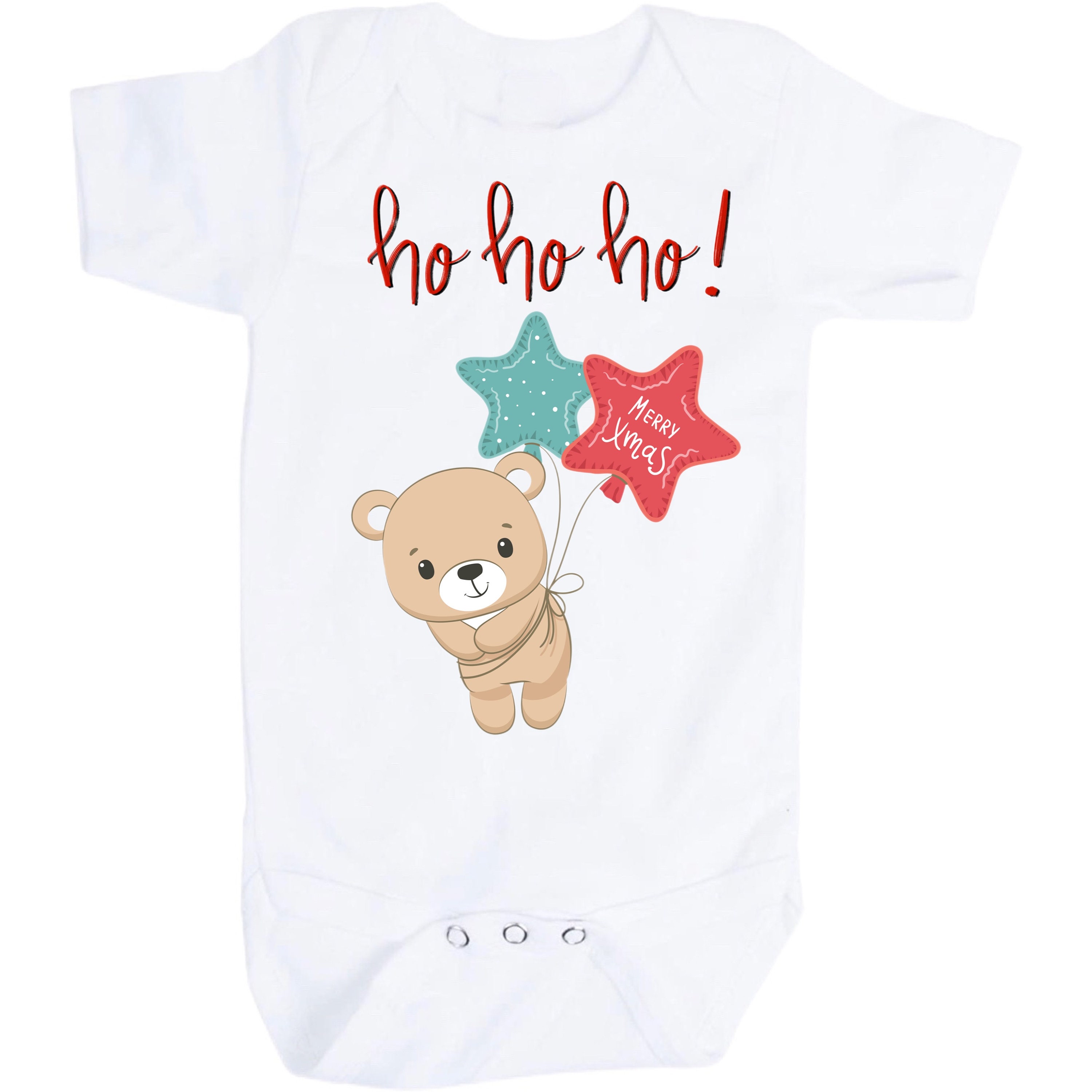 Baby's 1st Keepsake! Ho Ho Ho Bear! A baby bodysuit for Christmas with option to