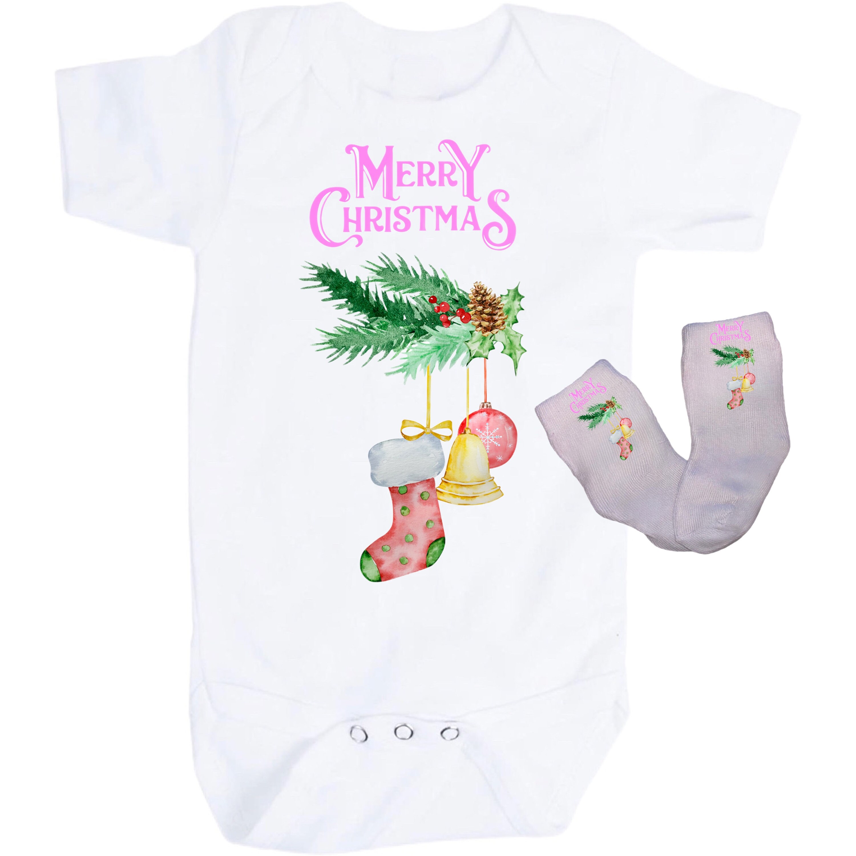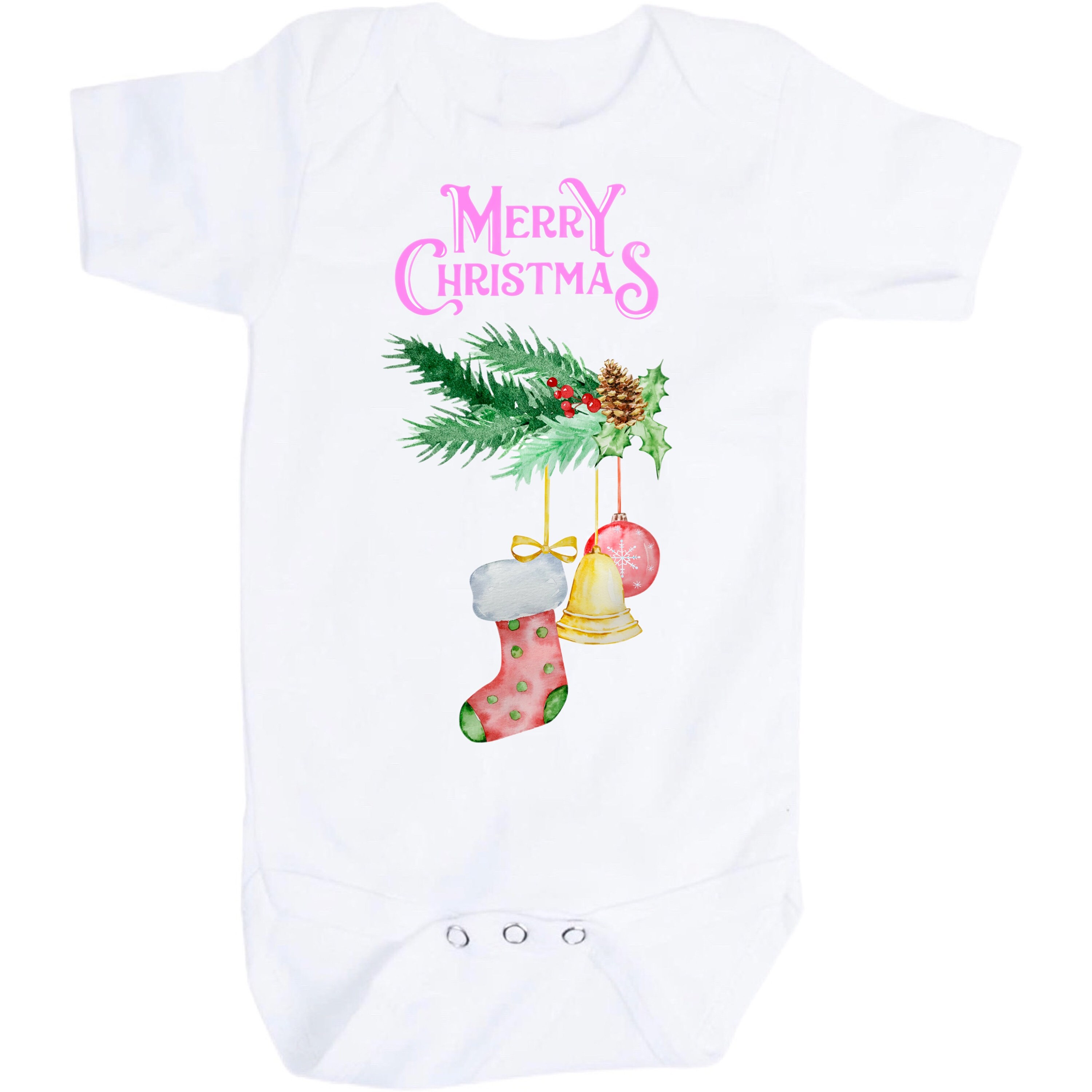 Baby's 1st Keepsake! Pink Merry Christmas! A baby bodysuit for Christmas with option to