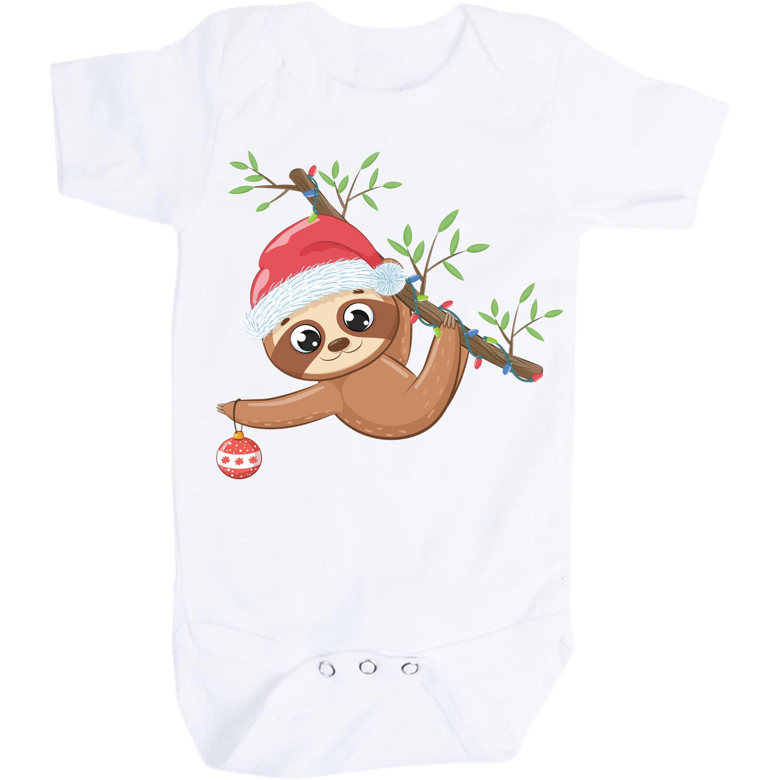 Baby's 1st Keepsake! Sloth Holiday! A baby bodysuit for Christmas with option to