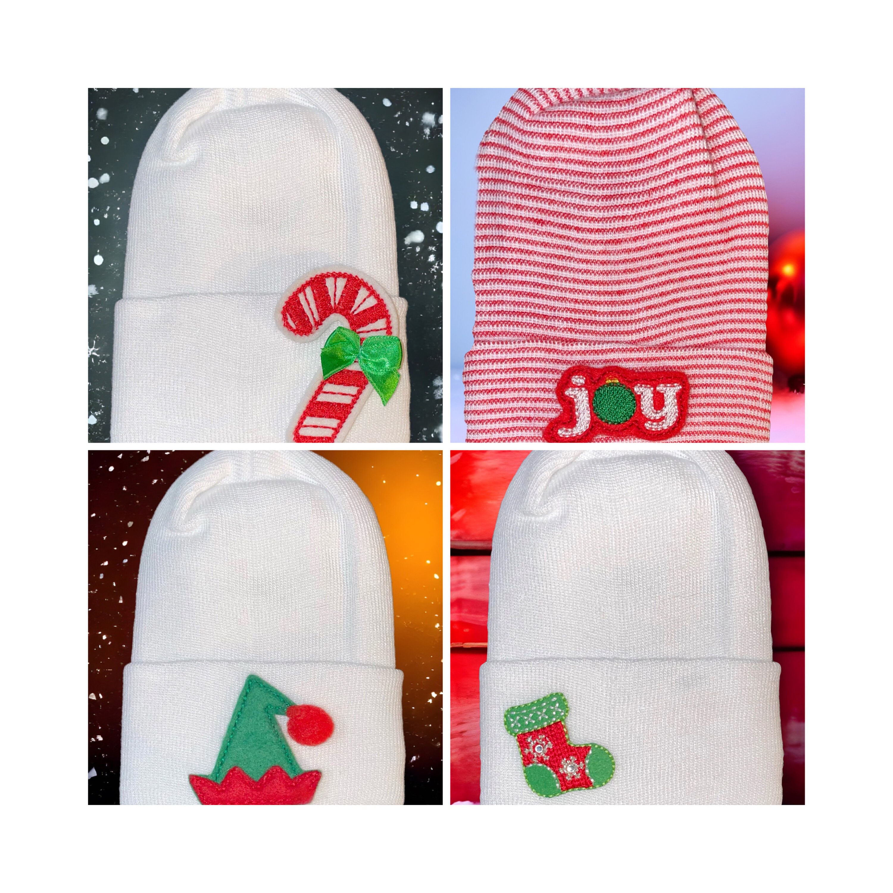 This listing is for a holiday hat in your choice of both hat color and applique. These ship fast and i only have a few. Perfect for your new addition! Christmas holiday hat will be perfect to have for baby upon arrival letting the world know your baby has arrived! Cute for pictures too