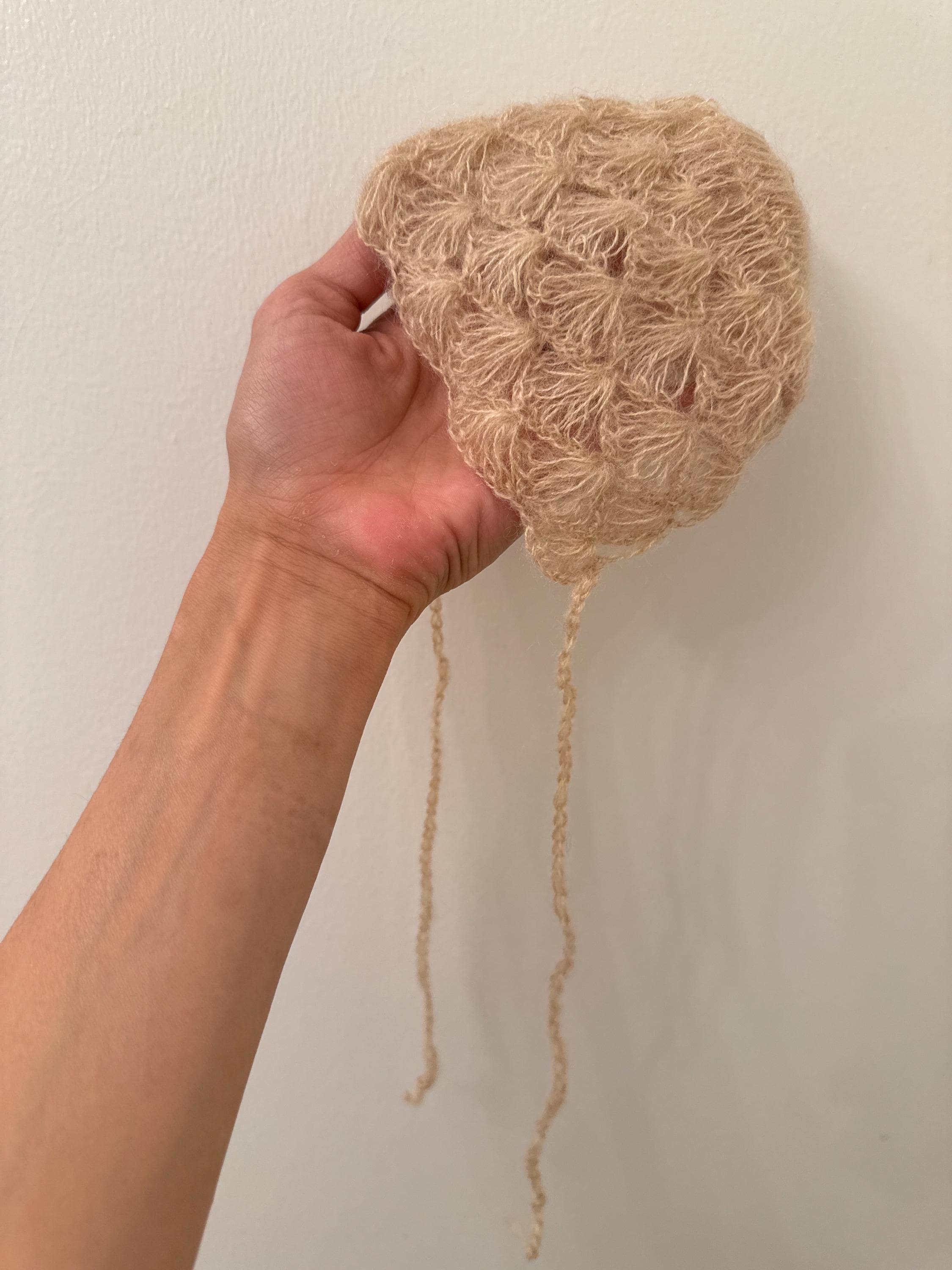 Hand Crocheted Gender Neutral Bonnets Made with Love. Delicate, dreamy, and so soft, each baby bonnet is crocheted by hand using a featherlight mohair-blend for a timeless, heirloom feel. Perfect for newborn photos and a great gift. I have made only a handful of these and in one color SO THEY ARE READY TO SHIP! A neutral khaki/beige color for a boy or girl.