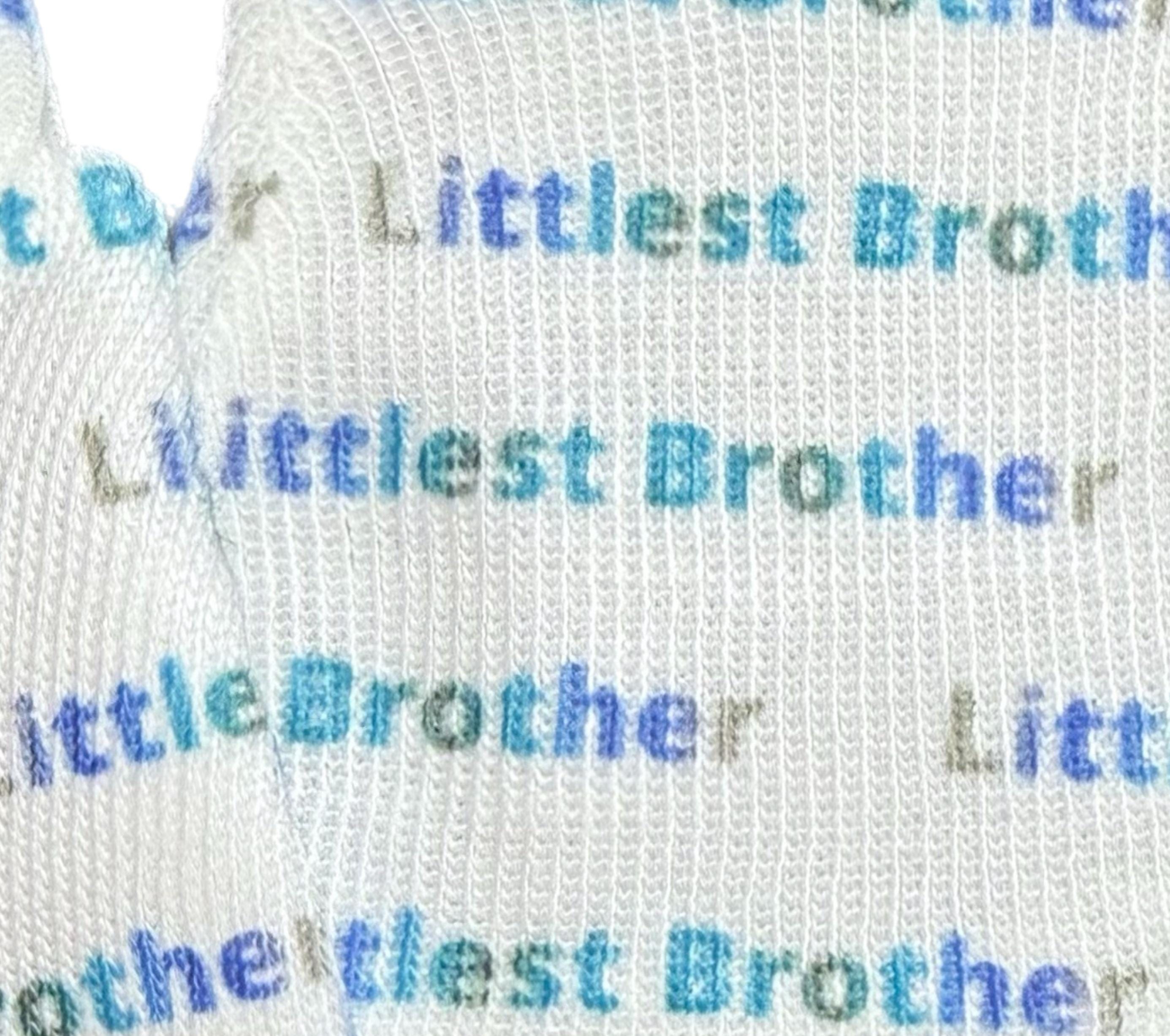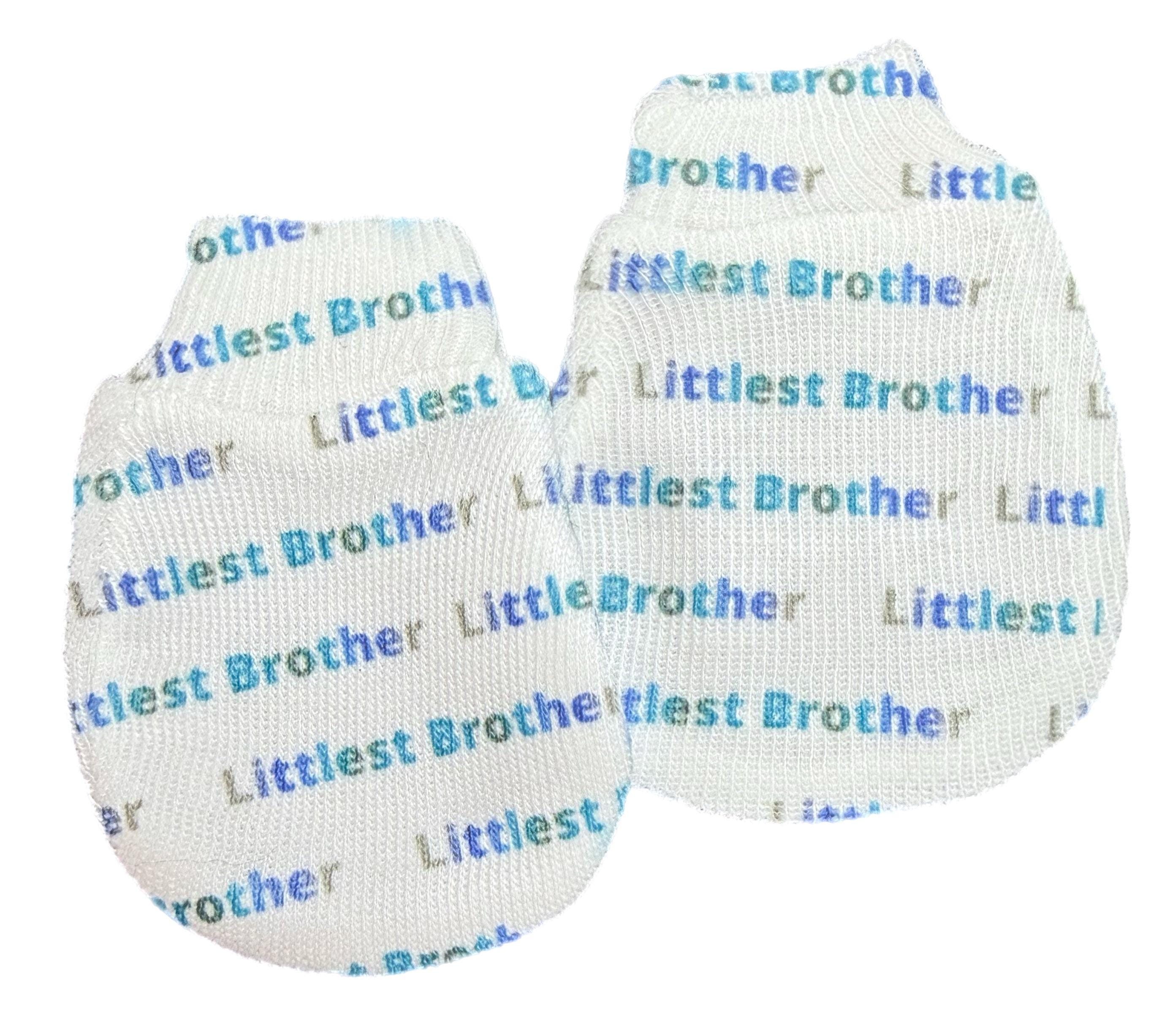 This listing is for an adorable pair of newborn no scratch mittens with Littlest Brother in blues and gray. Makes a great shower gift! Gender reveal.