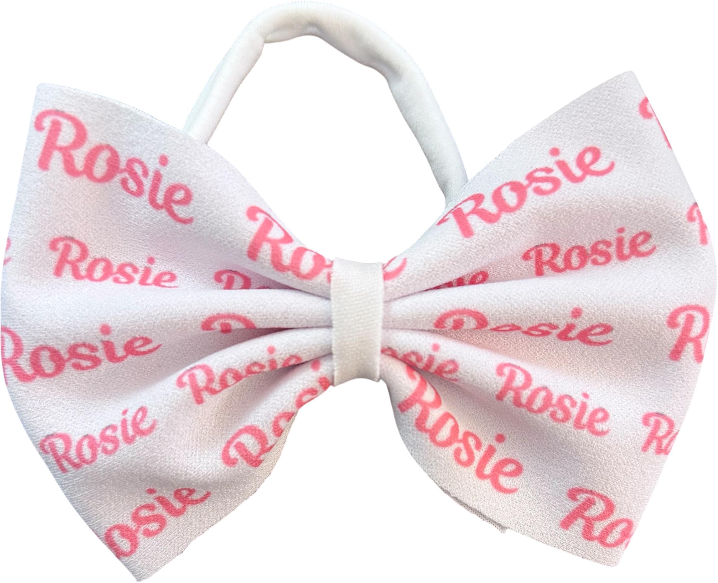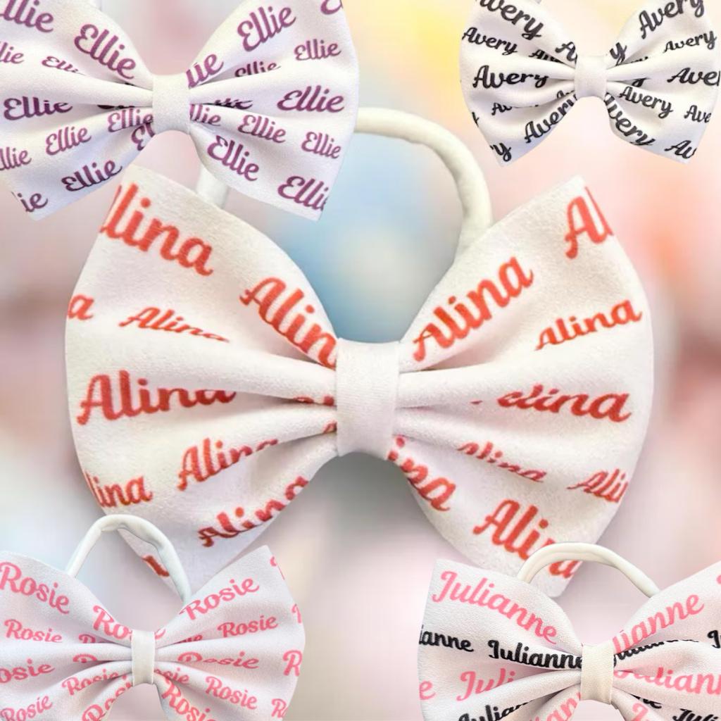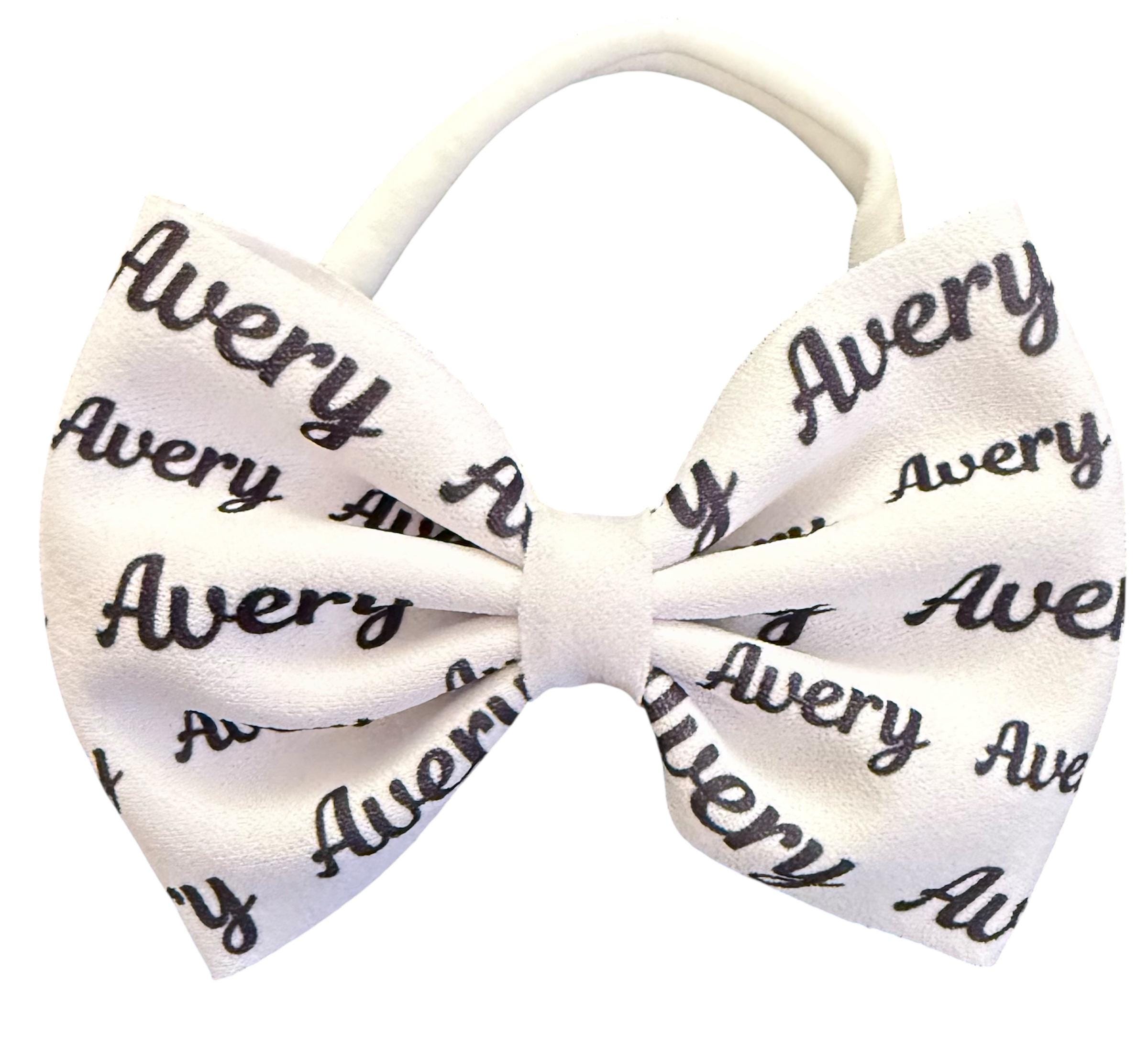 I am so excited to be able to offer these personalized bows on white newborn hat, nylon headband or alligator clip. You choose at checkout. ♥ A Posh Baby Loves exclusive! You choose name color!!