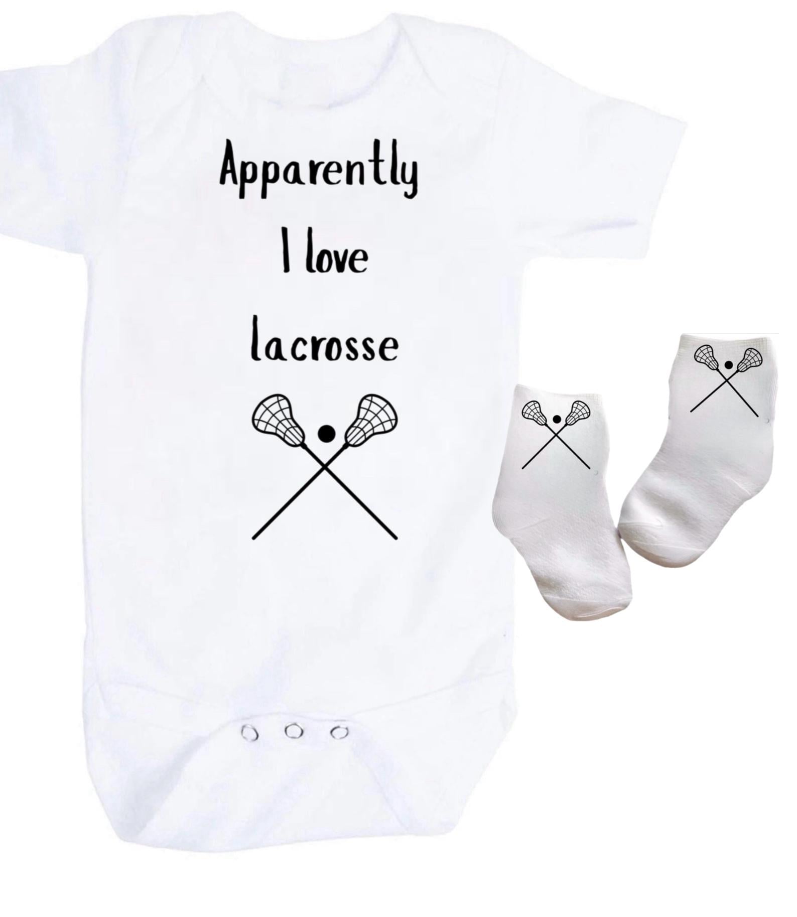 This listing is for our Apparently I Love Lacrosse bodysuit and socks set!
