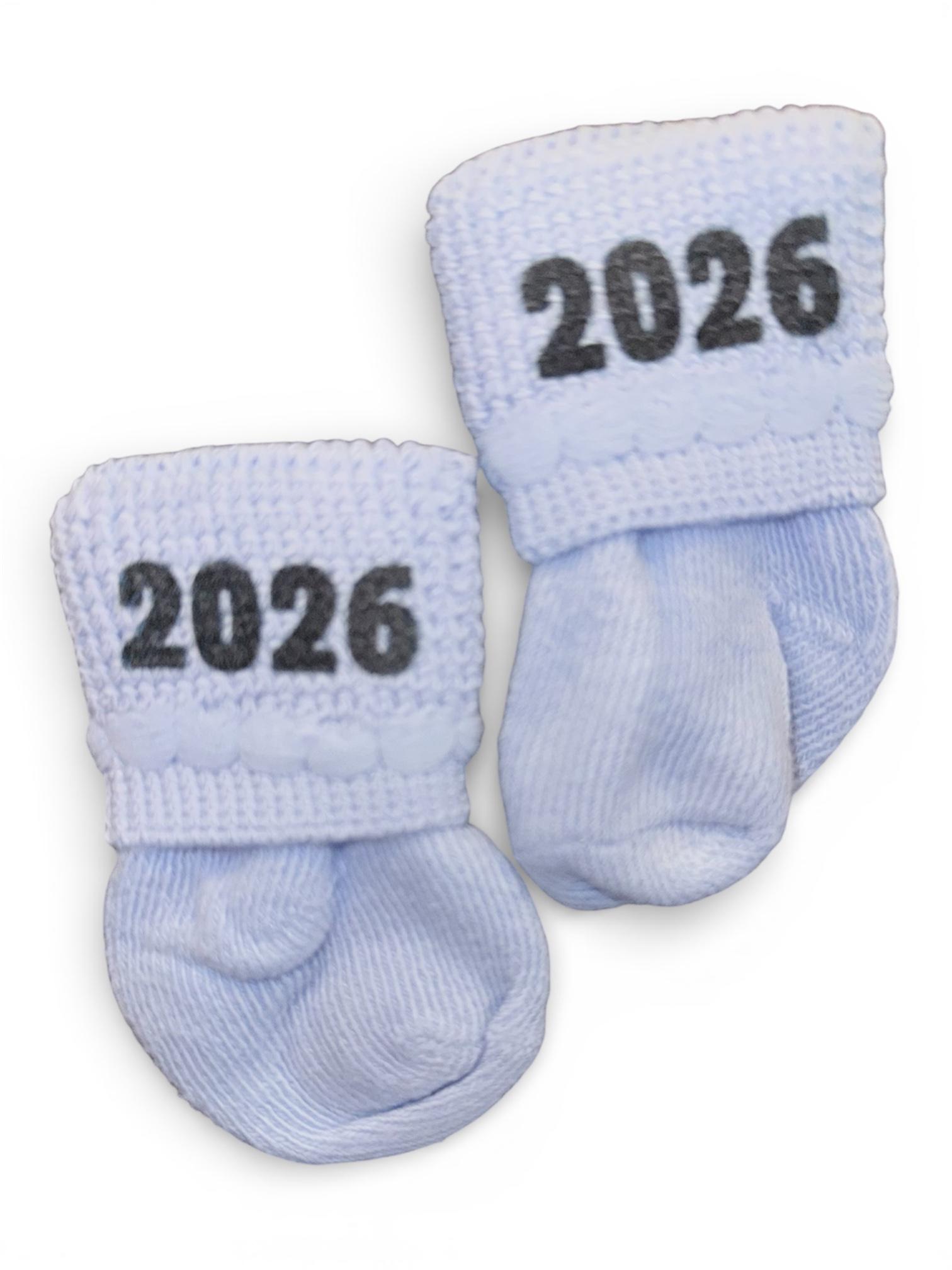 This listing is for one pair of pink, blue OR White socks with 2026 or 2027 in black.