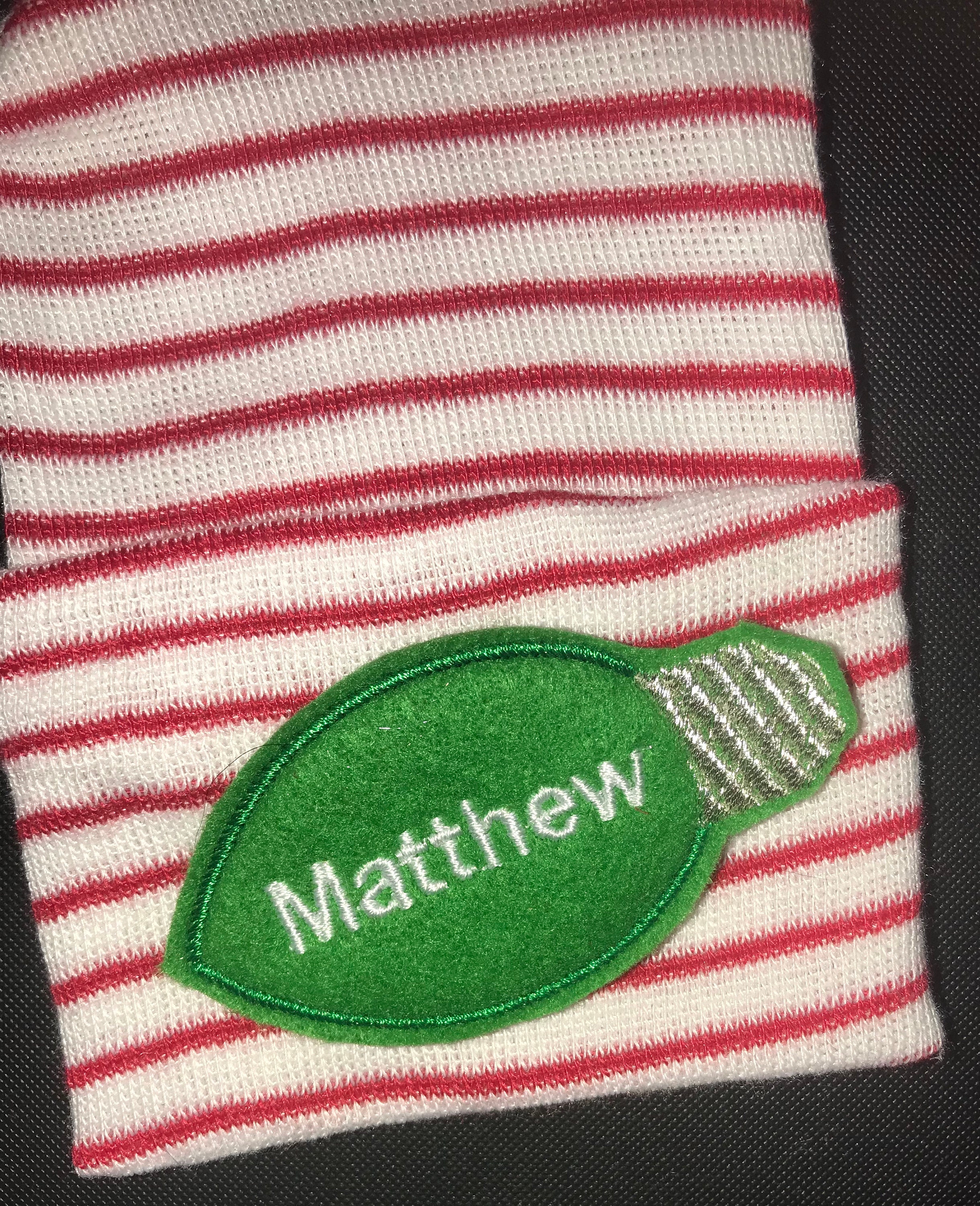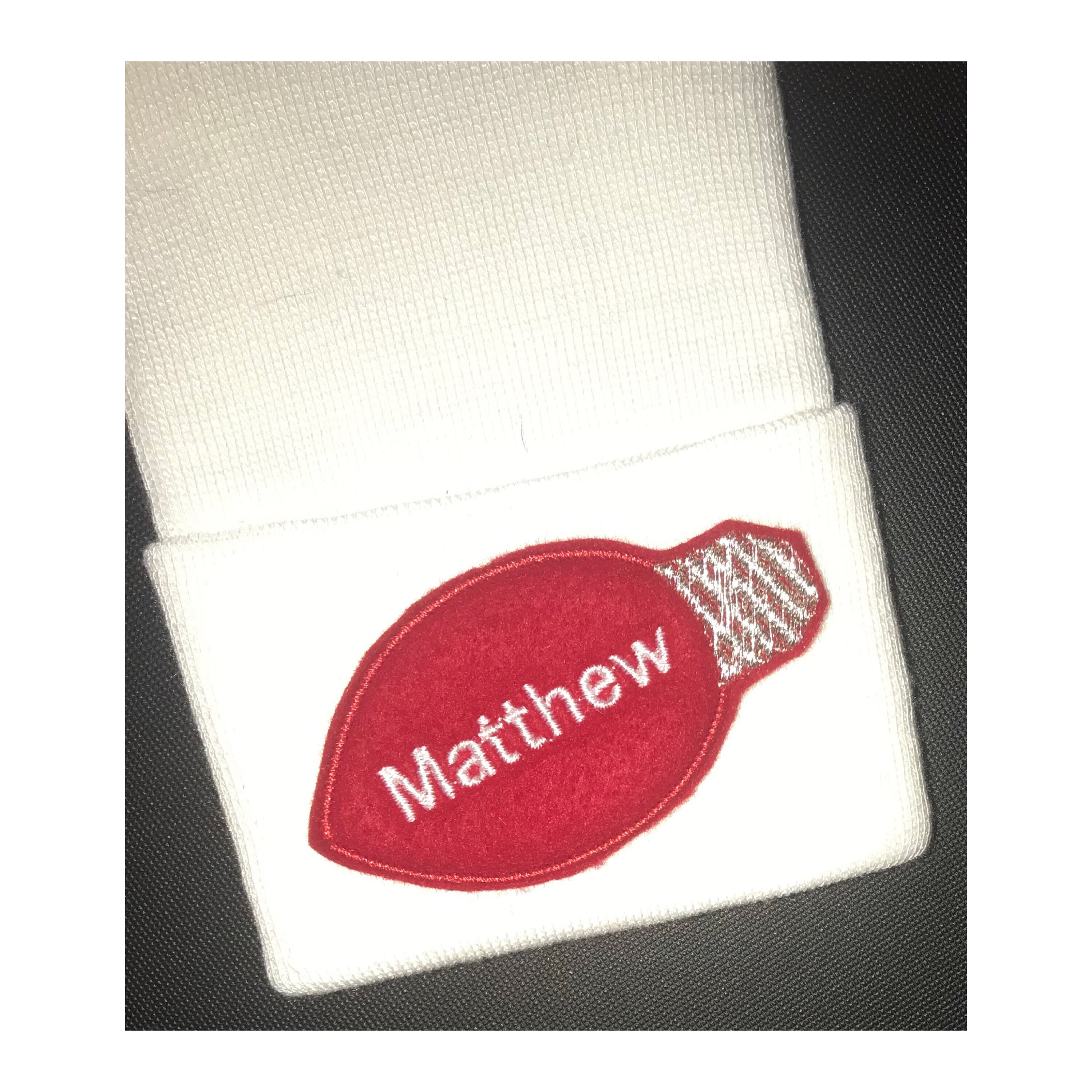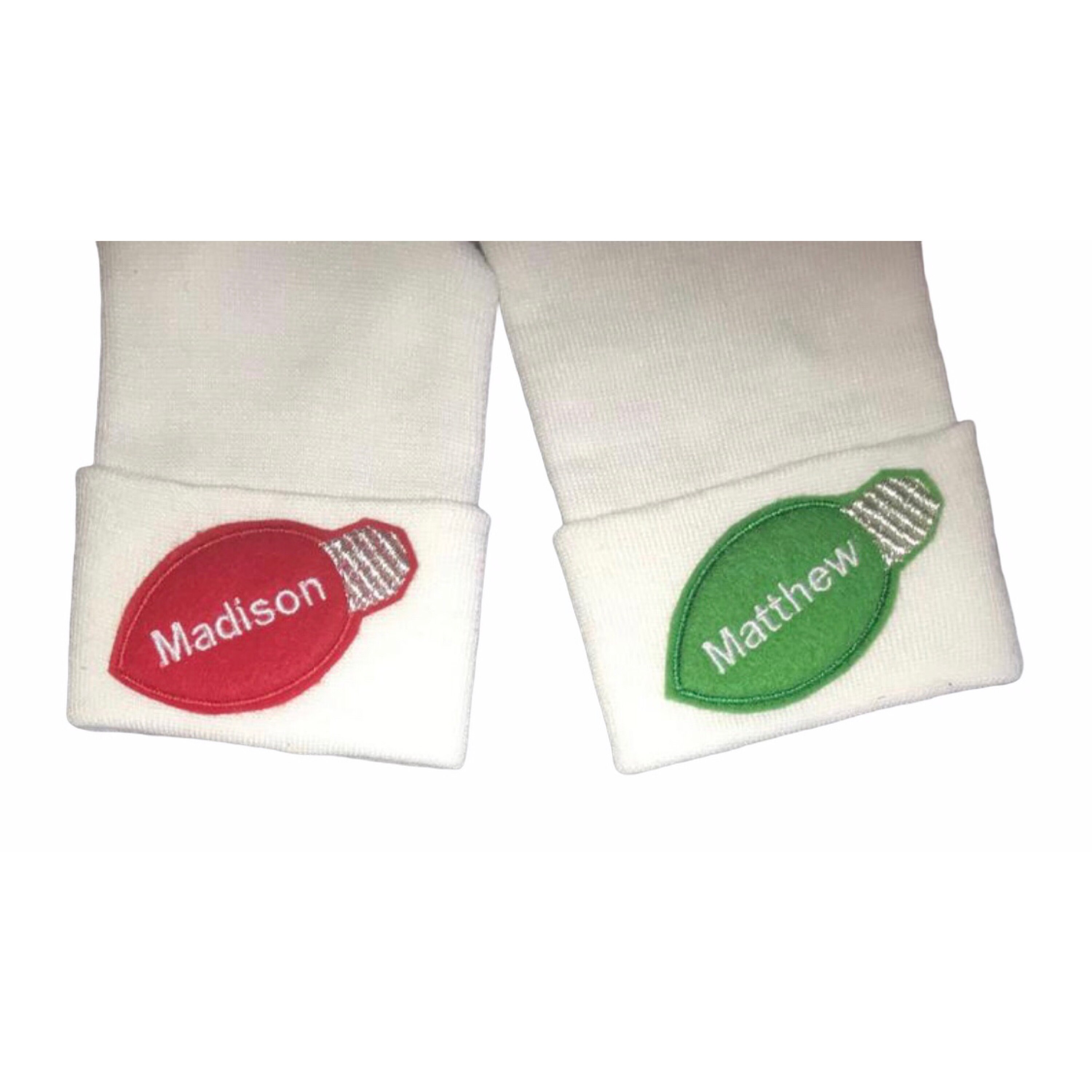 This listing is for a super cute newborn hospital hat with Your baby’s name on a Christmas  bulb. PERFECT for those 1st Christmas pictures!! For BOY OR GIRL