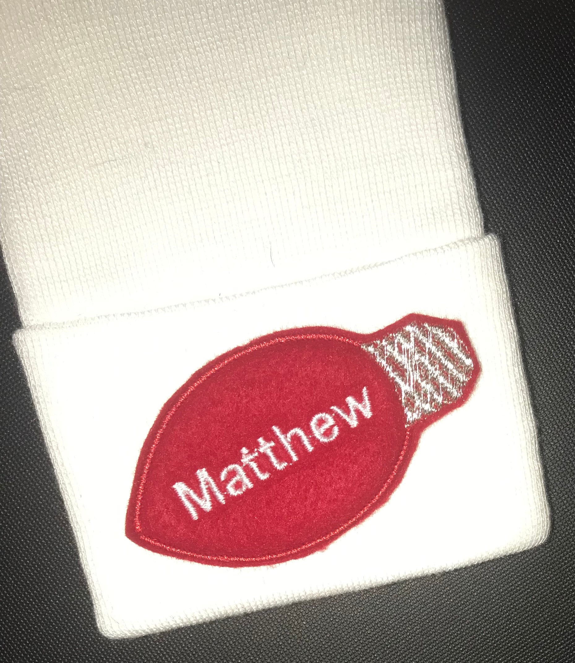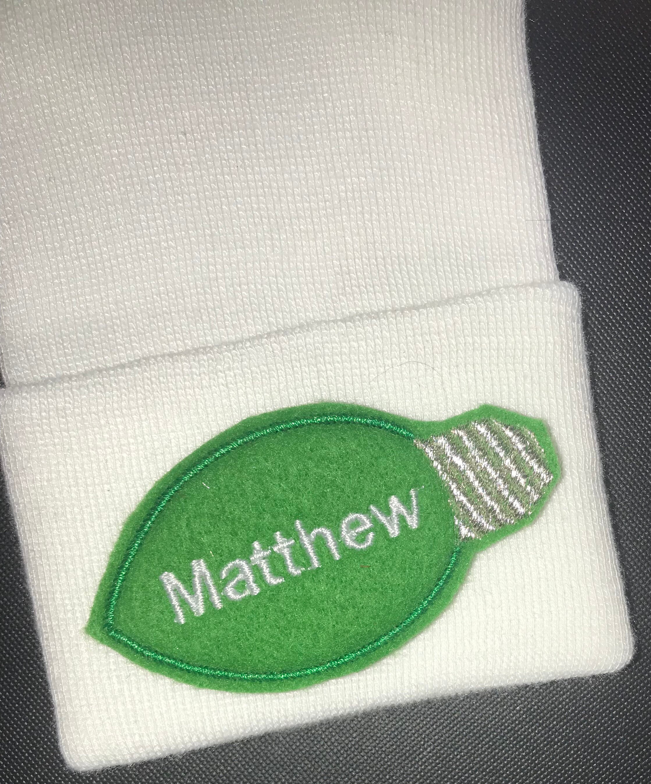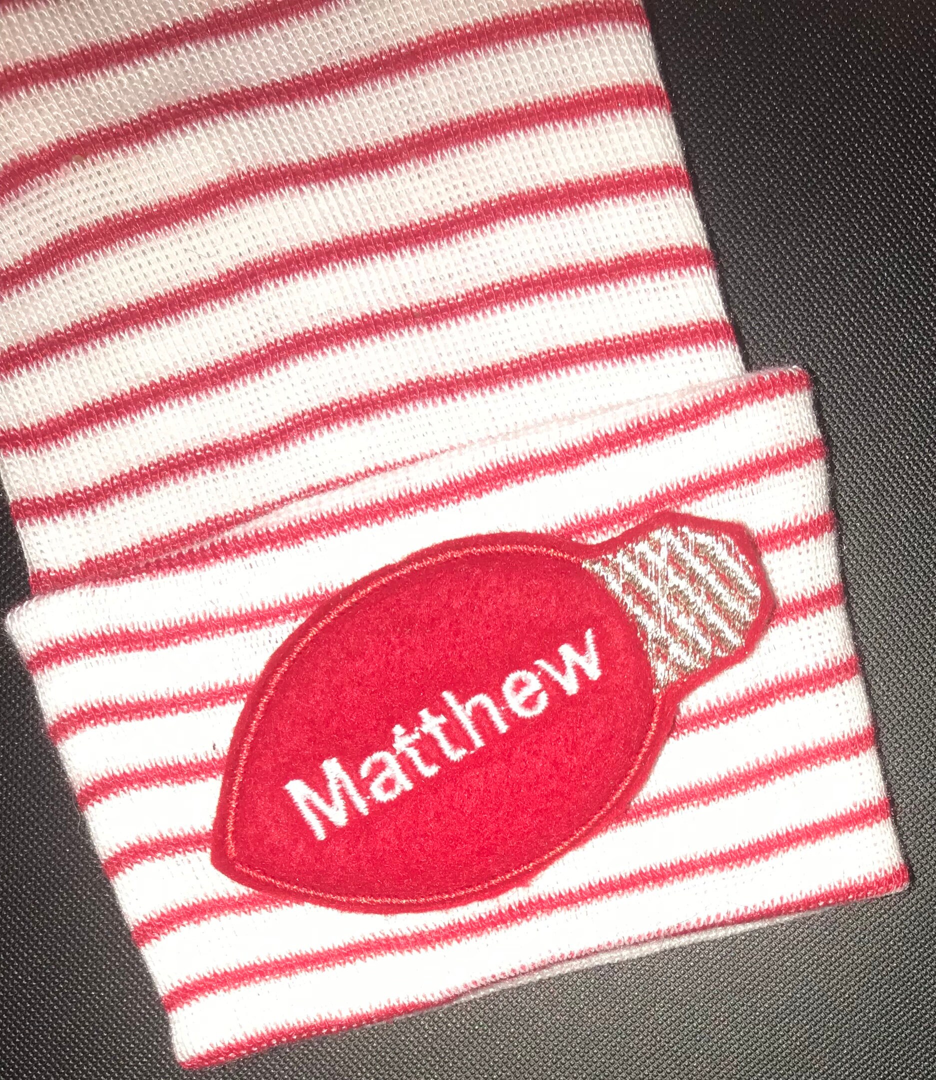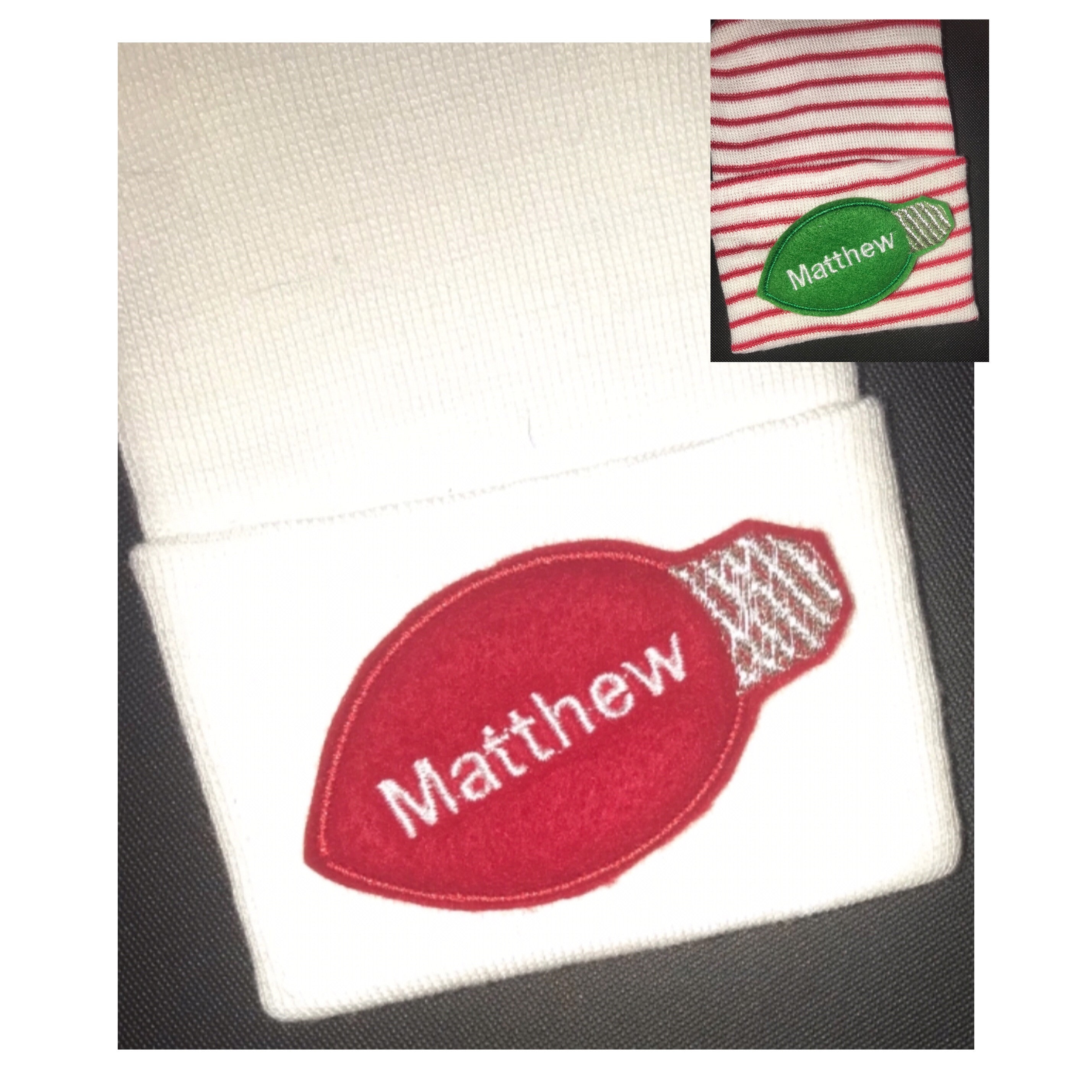 This listing is for a super cute newborn hospital hat with Your baby’s name on a Christmas  bulb. PERFECT for those 1st Christmas pictures!! For BOY OR GIRL