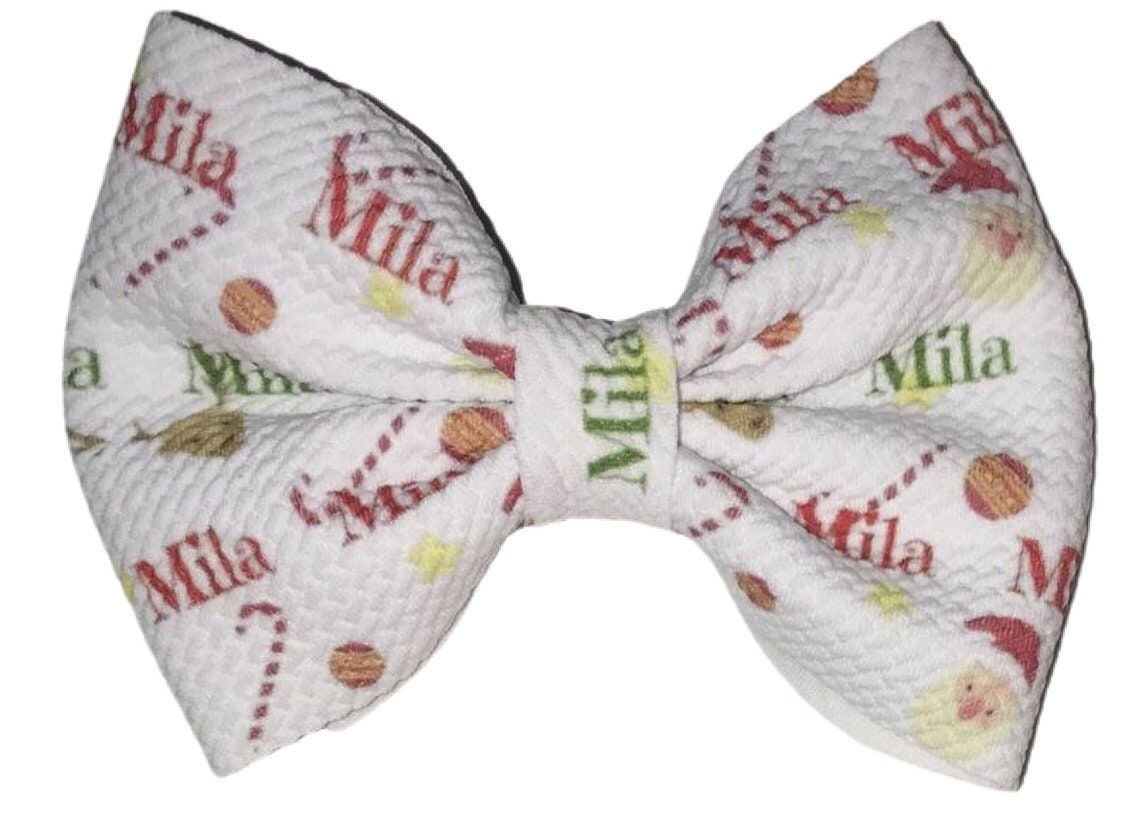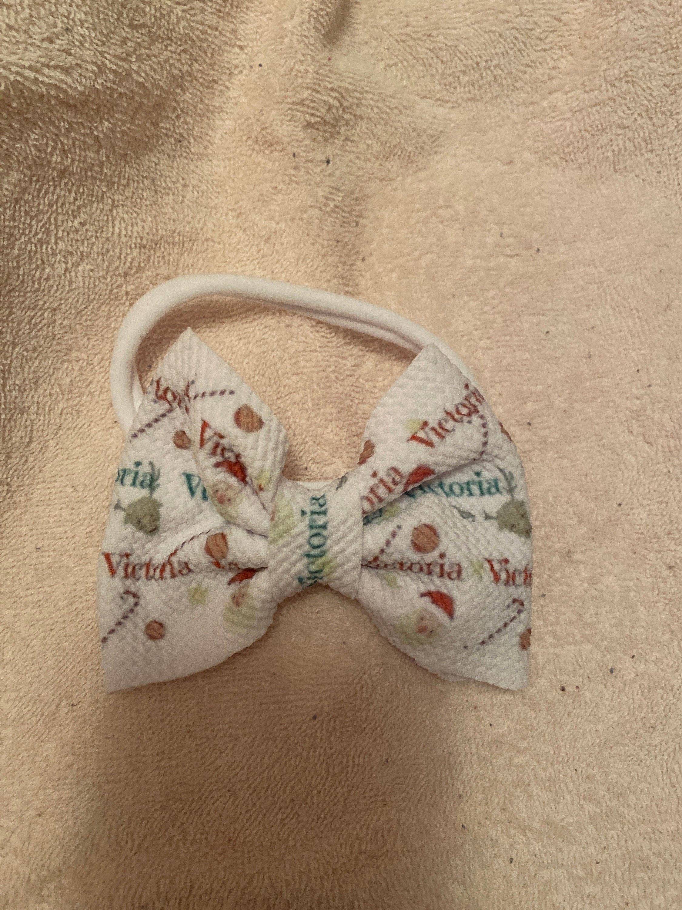 I am so excited to be able to offer these custom bows little santas’, reindeers, candy canes and ornaments  on them with your baby’s name on it in red and green.  You select it on hat, headband or alligator clip at checkout  ♥ A Posh Baby Loves exclusive!  Great gift. Cute for pictures.